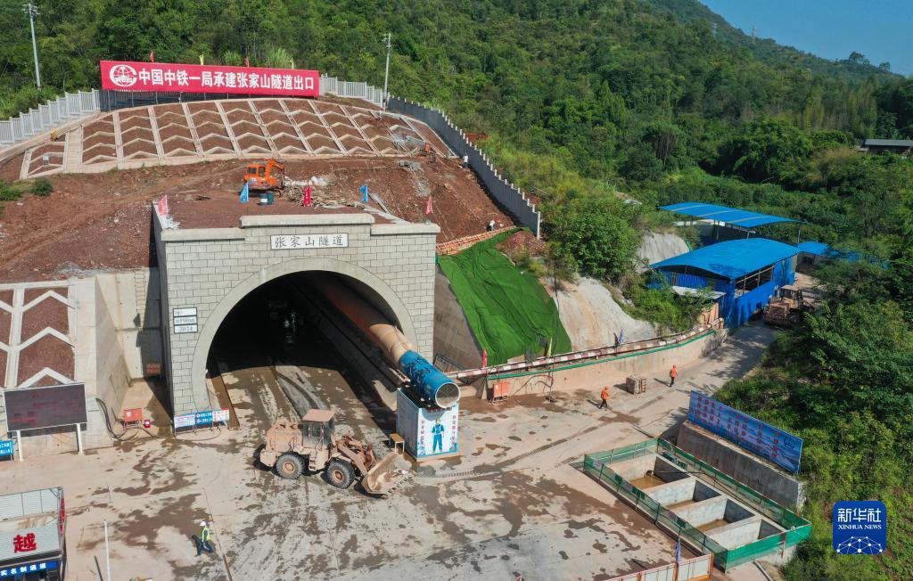 這是9月14日拍攝的建設中的渝湘高鐵重慶至黔江段站前3標張家山隧道(無人機照片)。