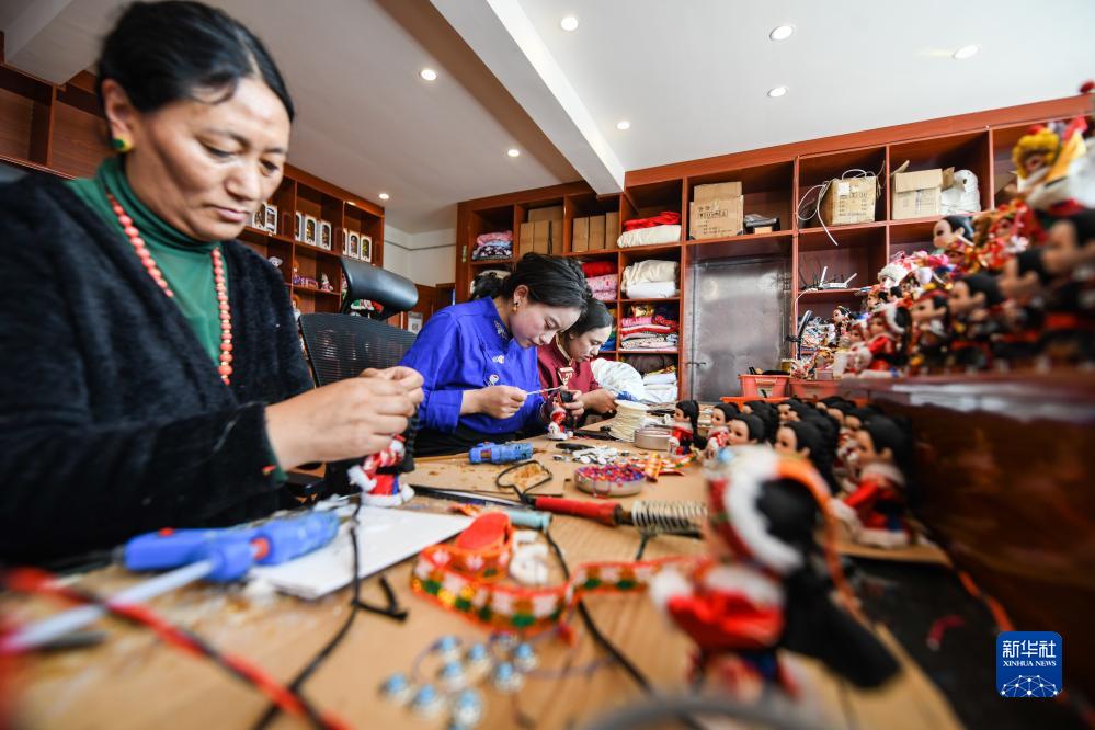 在四川省阿壩藏族羌族自治州若爾蓋縣唐克鎮白河社區的手工合作社內,擺放著眾多精致漂亮的手工娃娃,它們服飾各異,大小不同,頗具民族風情。它們的藏族名字叫“亞一則則”,意為“吉祥娃娃”。