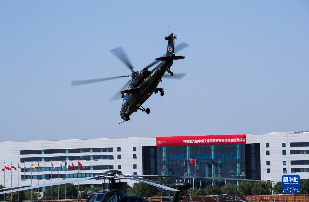 當日,第六屆中國天津國際直升機博覽會在天津市空港經濟區開幕。陸軍“風雷”飛行表演隊在開幕式上進行飛行表演,先后向觀眾演示三機芭蕾、尾追螺旋、四機開花等8個課目的特技飛行動作,展示了陸軍航空兵部隊轉型建設和實戰化訓練成效。