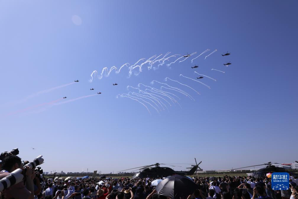 當日,第六屆中國天津國際直升機博覽會在天津市空港經濟區開幕。陸軍“風雷”飛行表演隊在開幕式上進行飛行表演,先后向觀眾演示三機芭蕾、尾追螺旋、四機開花等8個課目的特技飛行動作,展示了陸軍航空兵部隊轉型建設和實戰化訓練成效。