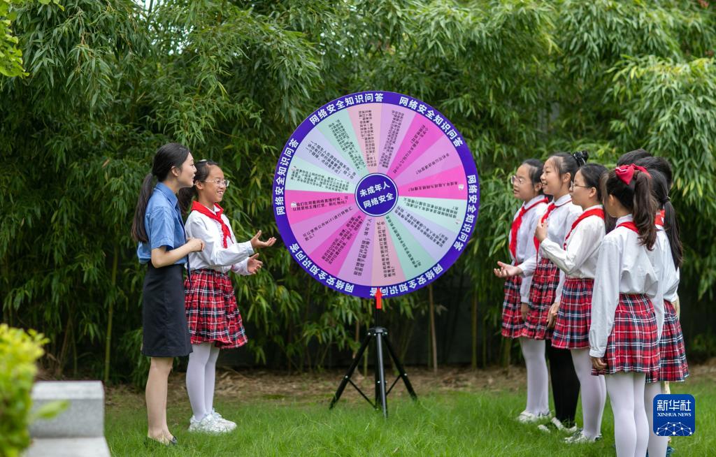 9月14日,江蘇省興化市檢察院未成年人法治宣講團的工作人員走進興化市文峰小學,通過游戲的方式給學生講解網絡安全知識。