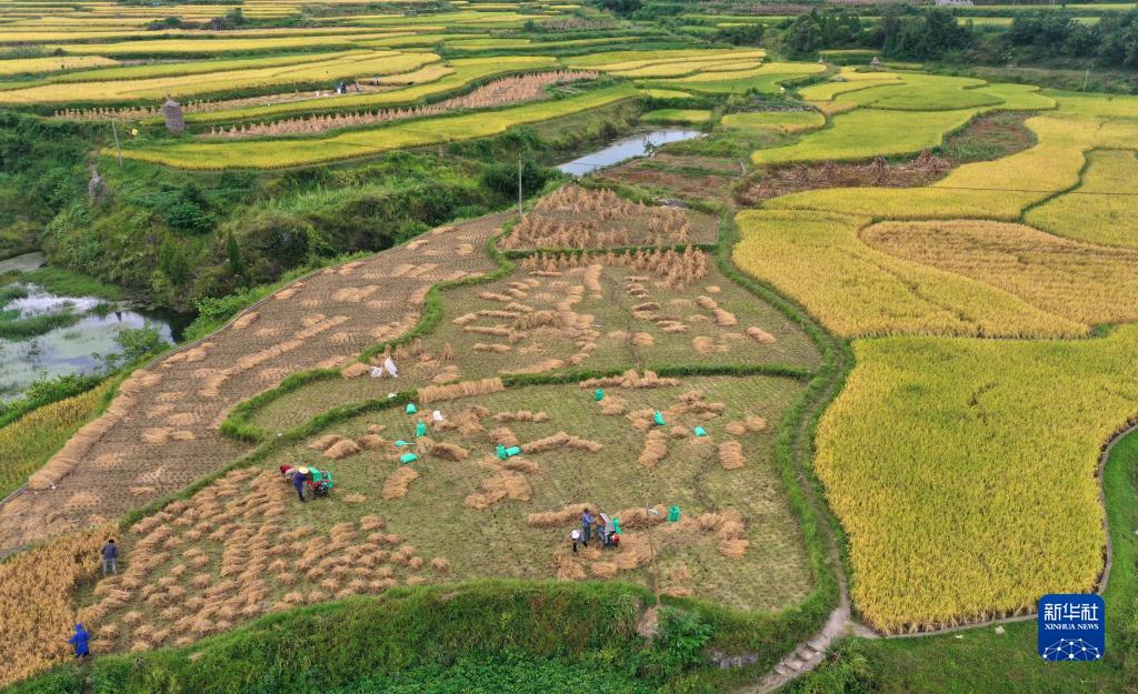 金秋時節,各地農民搶抓晴好天氣忙收獲,田間地頭一派繁忙景象。