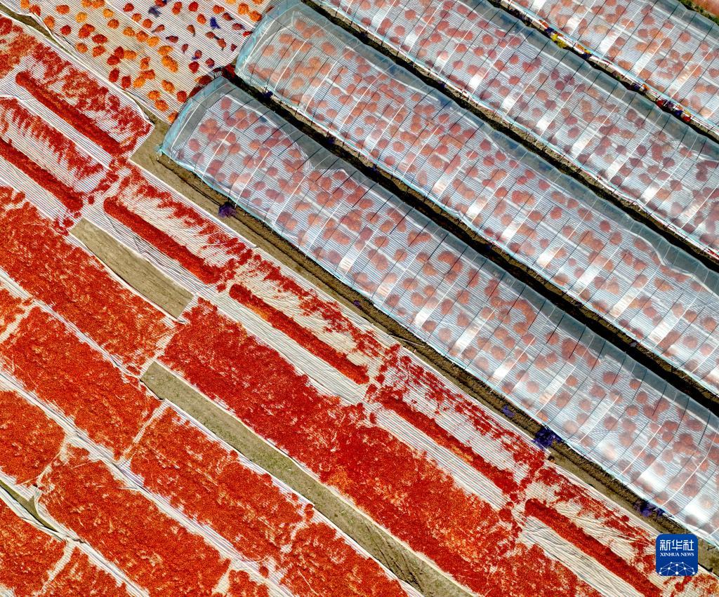 9月14日在安徽省亳州市譙城區雙溝鎮任小廟村拍攝的晾曬的辣椒。