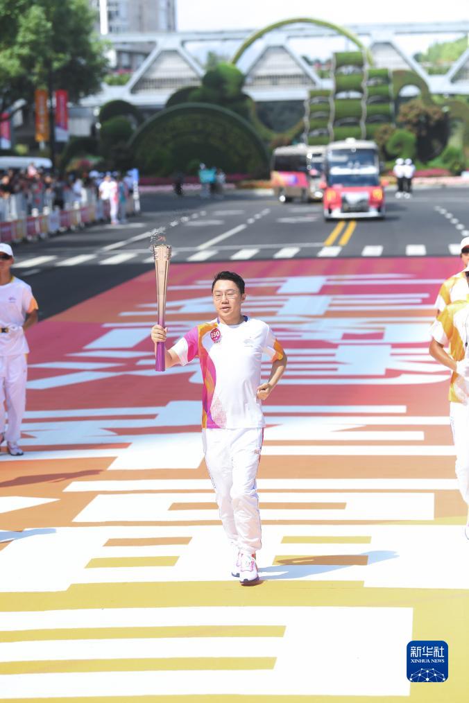 9月15日,火炬手蔡相理在火炬傳遞中。