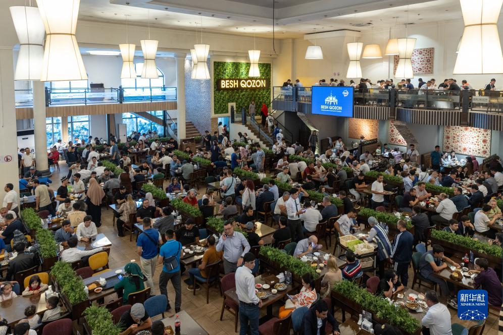 9月14日,在烏茲別克斯坦首都塔什干,人們品嘗抓飯。