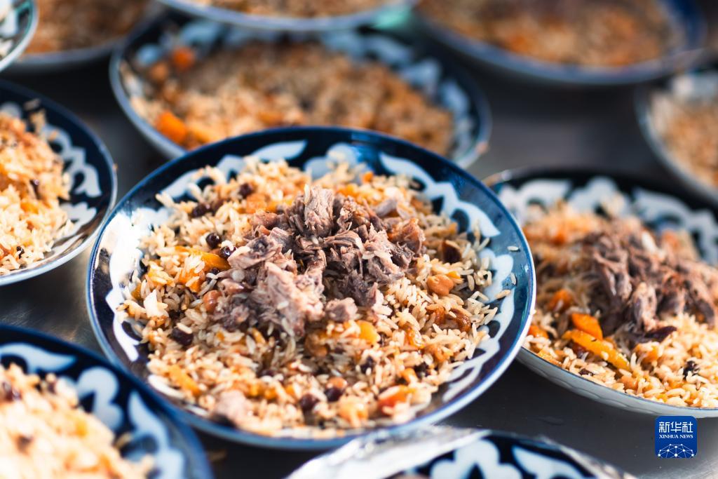 這是9月13日在烏茲別克斯坦首都塔什干拍攝的抓飯。