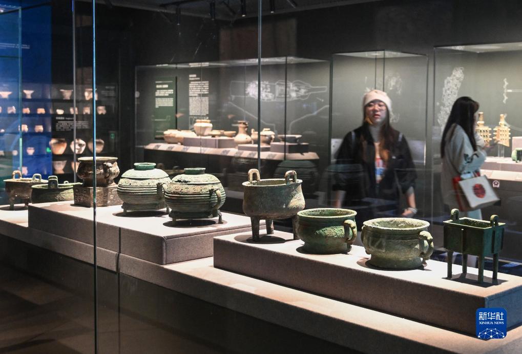 9月15日,公眾在中國考古博物館內參觀珍貴文物展品。倉儲式的展陳方式讓參觀者大飽眼福。