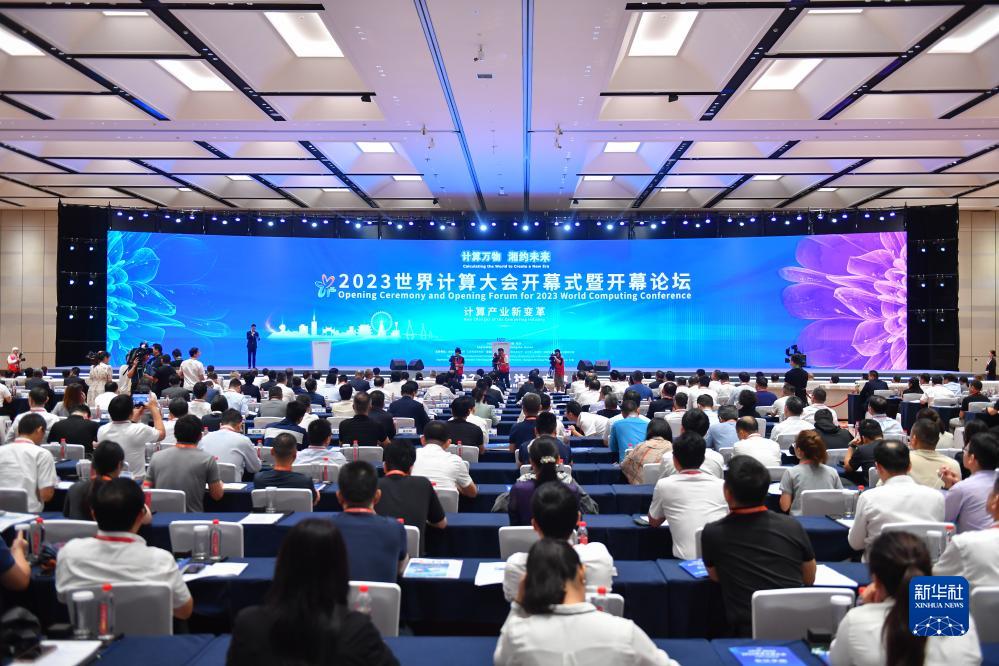 這是9月15日在長沙北辰國際會議中心拍攝的2023世界計算大會開幕式現場。