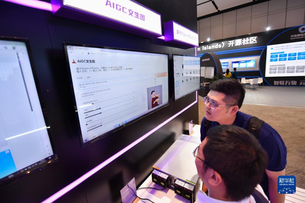 9月15日,參觀者在2023世界計算大會專題展上了解AIGC文生圖。
