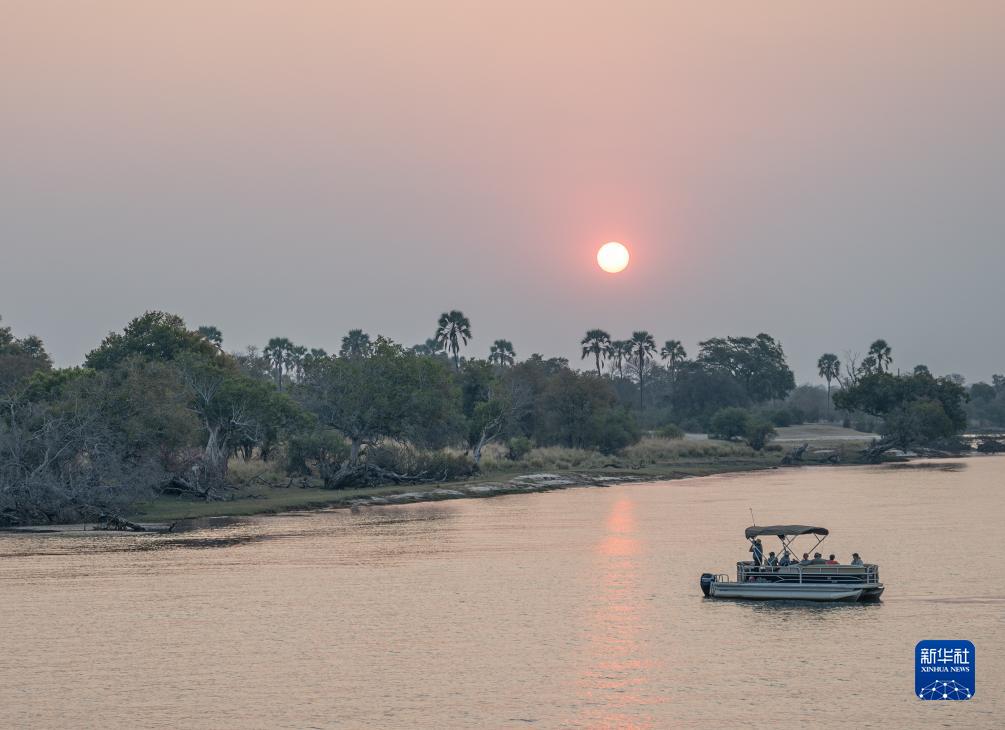 這是2023年8月23日在贊比亞拍攝的贊比西河上的游船。