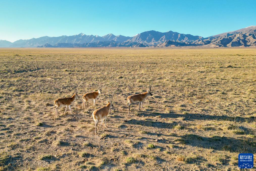 9月12日在阿爾金山國家級自然保護區拍攝的藏羚(無人機照片)。