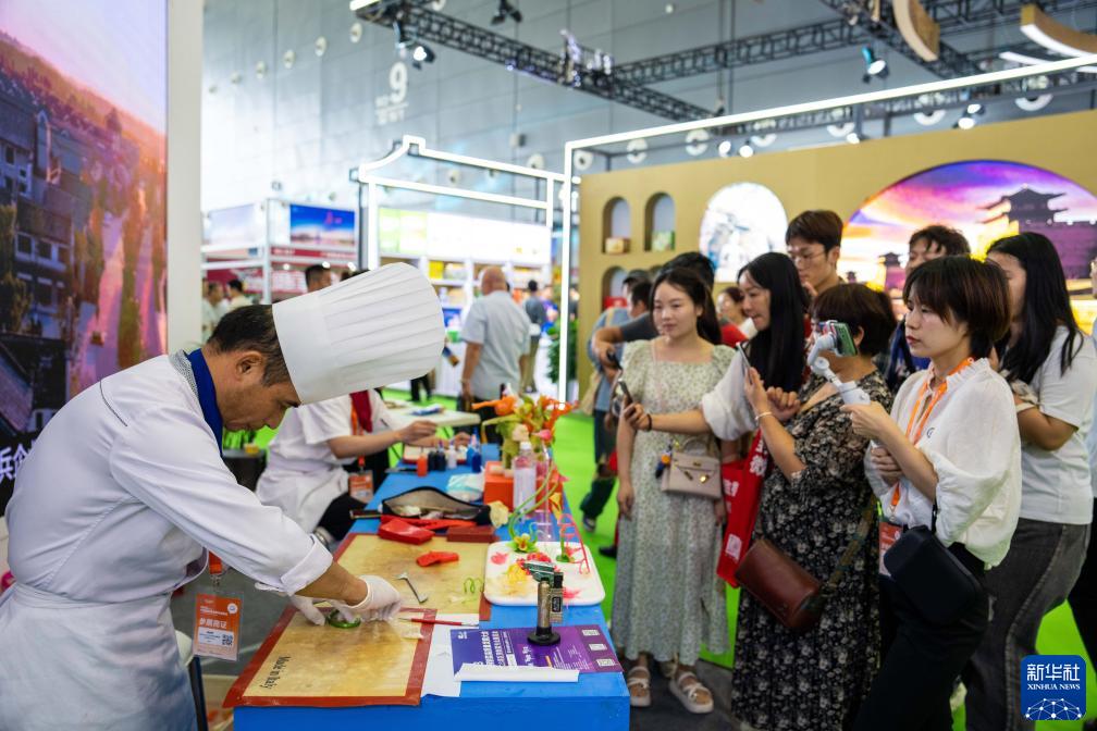 9月15日,在長沙國際會展中心,參展商在展示廚藝。