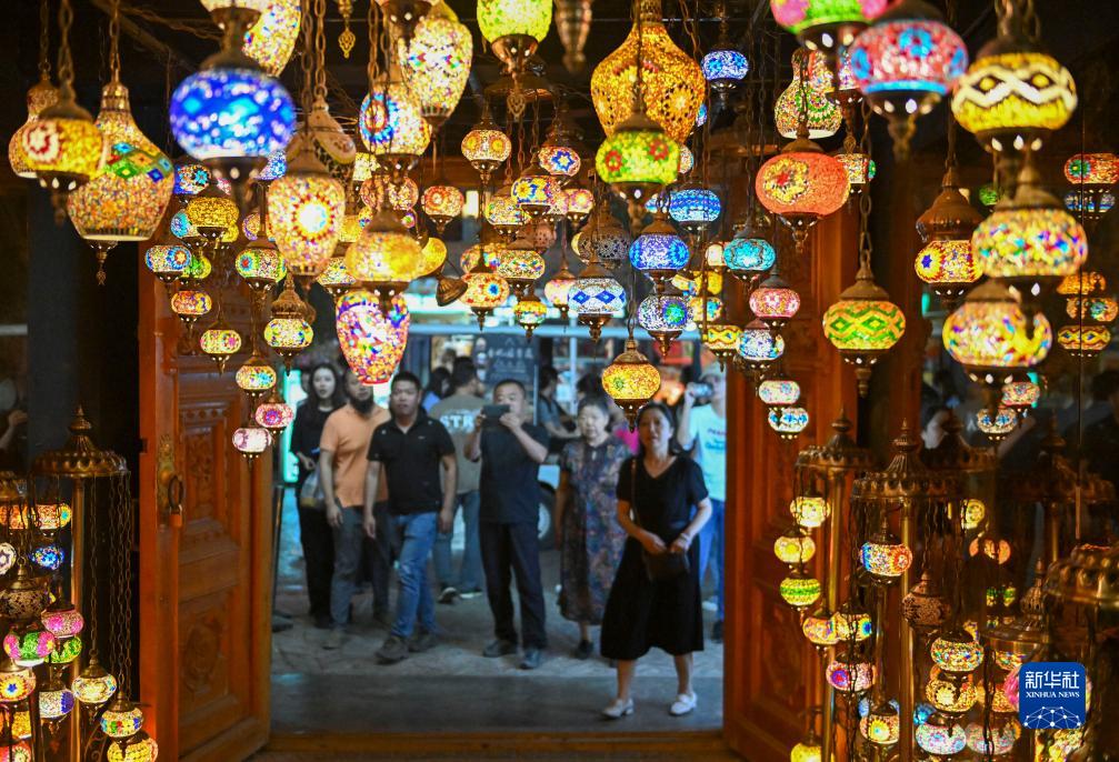 夜幕降臨,新疆喀什市中心的喀什古城景區流光溢彩,游人如織。近年來,喀什市豐富夜間消費服務供給、完善夜間配套保障、打造夜生活集聚效應,激發城市夜間消費活力。