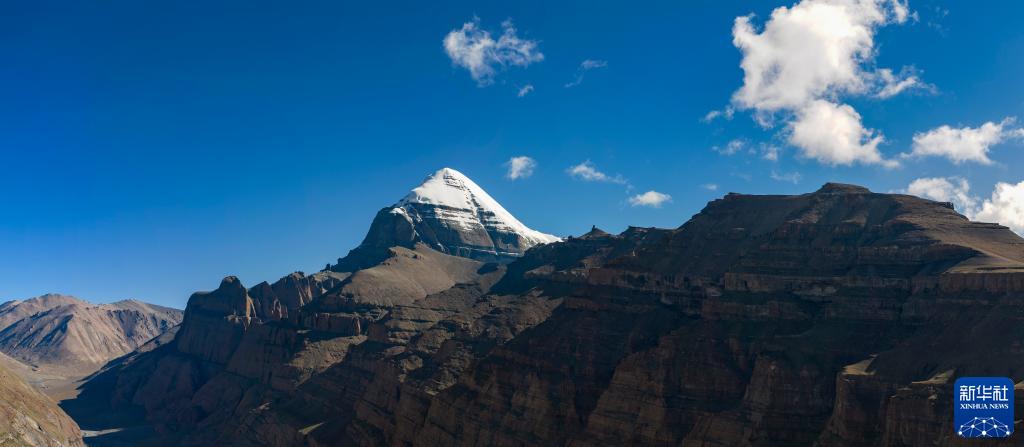 普蘭縣境內的岡仁波齊雪山(無人機照片,9月14日攝)。