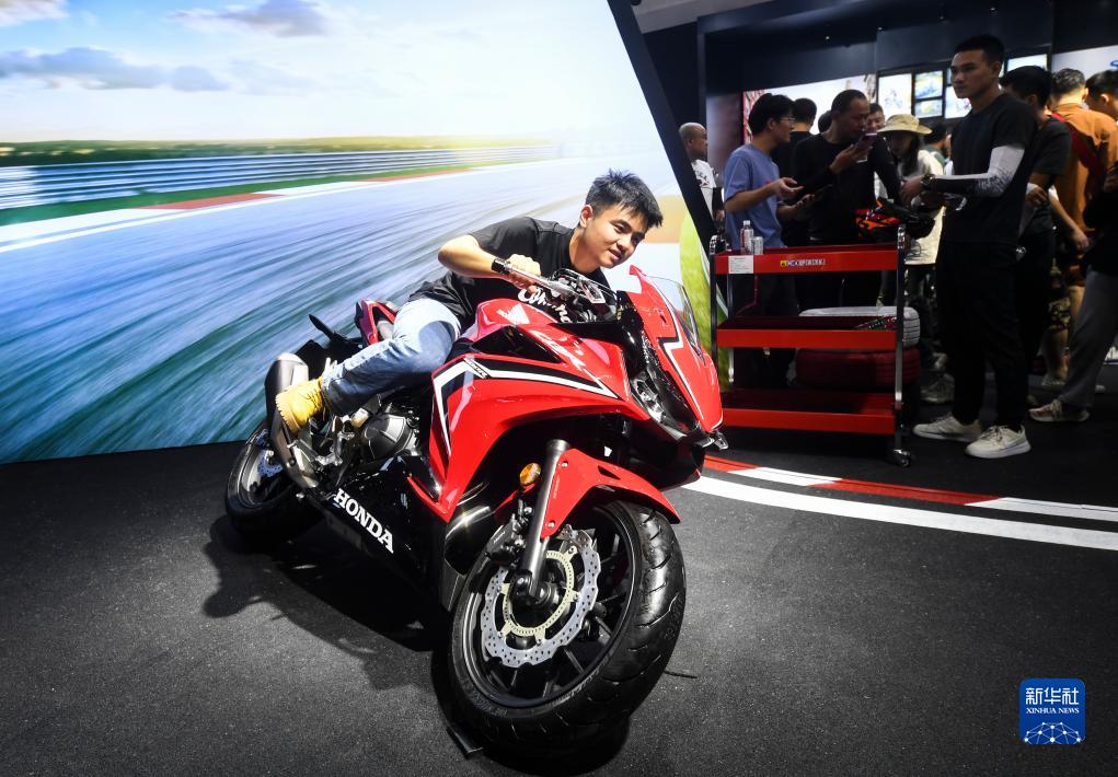 9月15日,觀眾在第二十一屆中國國際摩托車博覽會上參觀、體驗。