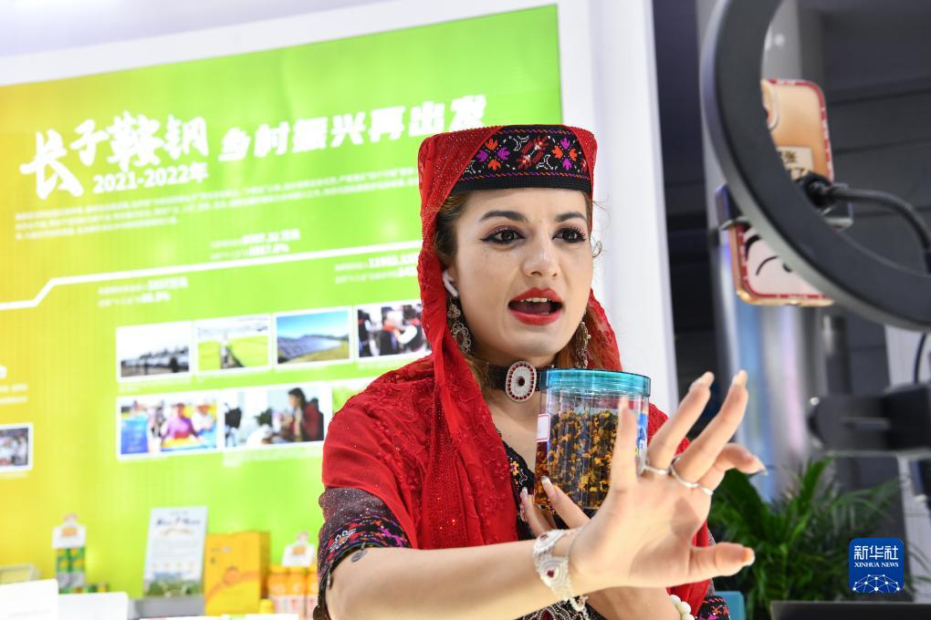 9月15日,在慈展會現場,一名主播正為助農產品直播帶貨。