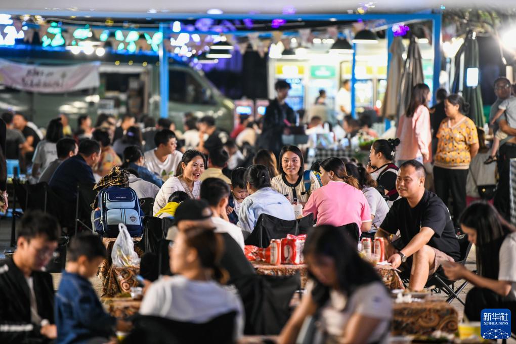 9月14日,游客和市民在興義市馬嶺河夜間消費聚集區吃夜宵。