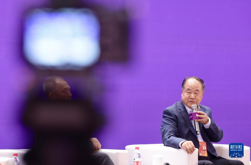 9月15日,作家莫言在“以文化人:文藝價值與社會生活”平行論壇的“中國文學與世界對話”圓桌對話現場發言。
