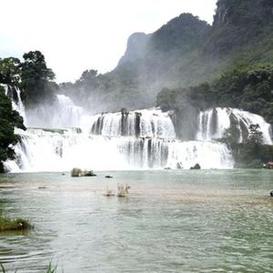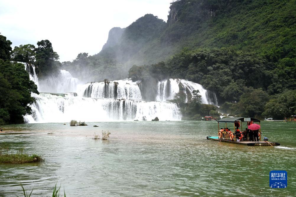9月15日,游客在中越德天(板約)瀑布跨境旅游合作區游玩。