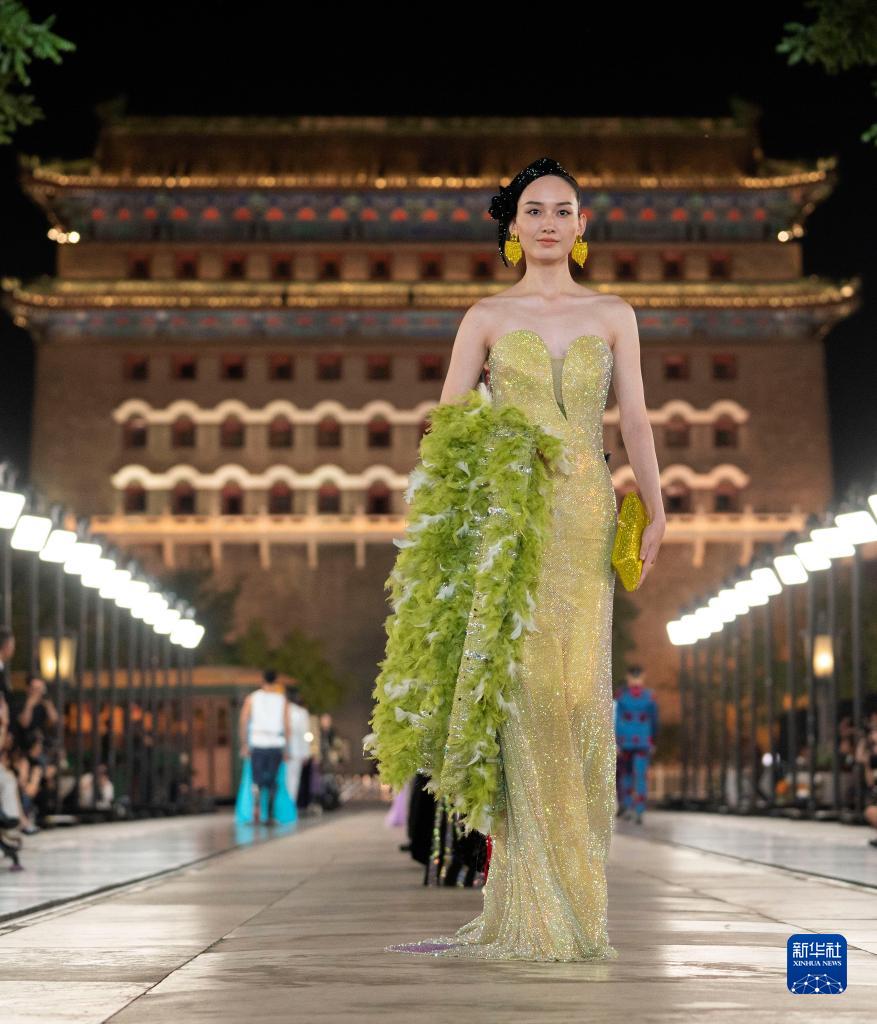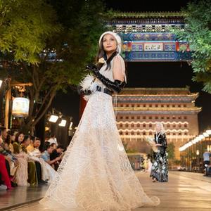 9月15日晚,2024春夏北京時裝周開幕式在北京前門大街舉行,在開幕式上,勞倫斯·許攜高級定制時裝上演“壯美中軸線”時尚大秀。