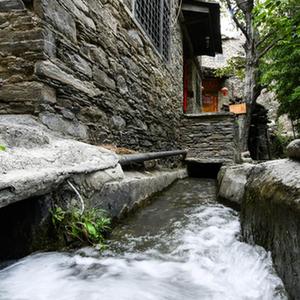 漫步在石木結構的古寨,甬道交錯戶戶相連、暗道中仍可見防御孔,屋下有迷宮般的水網相通。游客必去之處是最高處的碉樓,沿山而上,爬過層層獨木梯,山巒河谷一覽無余。羌族群眾在碉樓上供奉著白石和羊角,檐下是金燦燦的玉米棒。