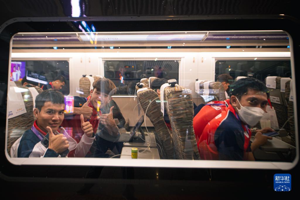 9月16日,泰國體育代表團成員乘坐復興號亞運智能動車組列車前往金華賽區。