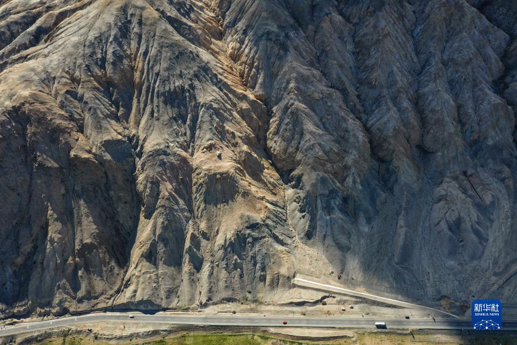 車輛行駛在新疆塔什庫爾干塔吉克自治縣的山區公路上(8月27日攝,無人機照片)。