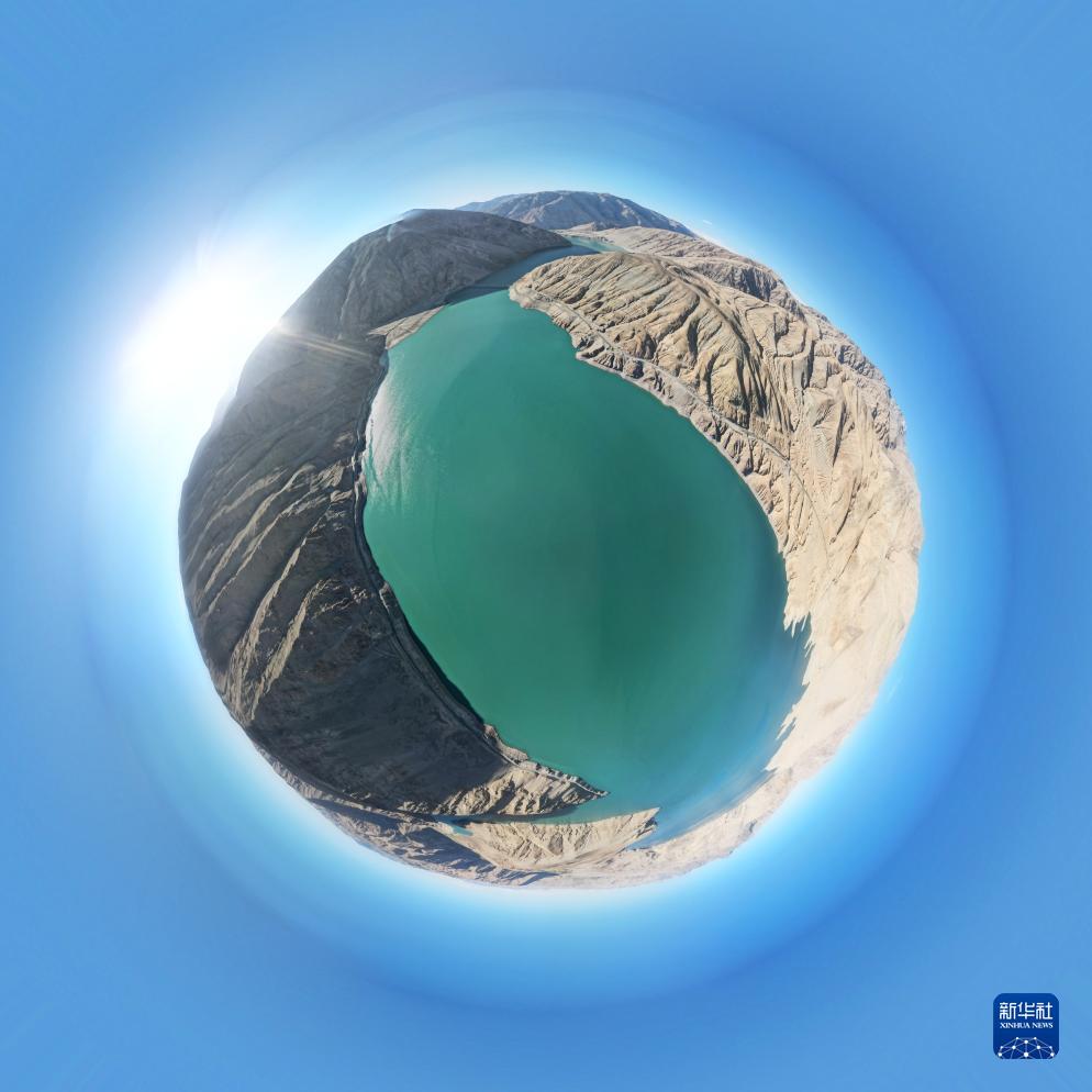 位于新疆塔什庫爾干塔吉克自治縣的下坂地水利樞紐工程(9月5日攝,無人機全景照片)。