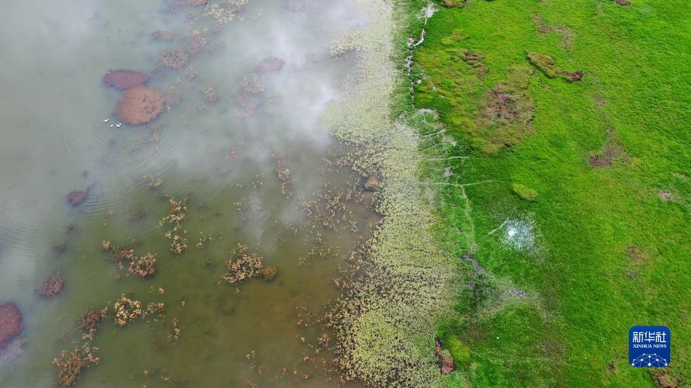 這是甘肅尕海則岔國家級自然保護區尕海濕地的景色(7月7日攝,無人機照片)。