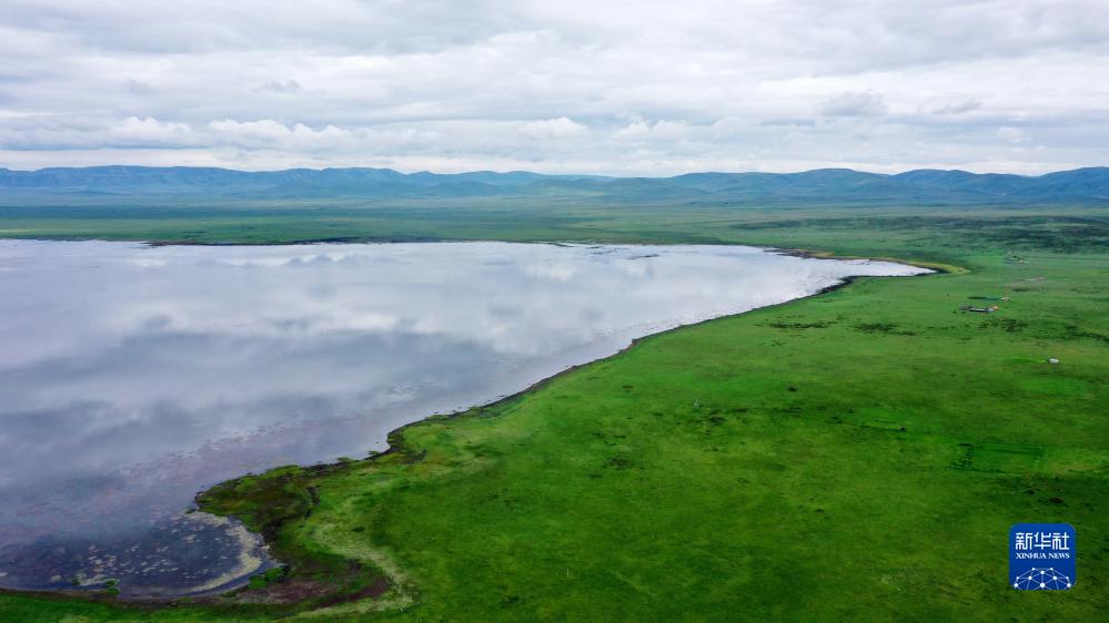 這是甘肅尕海則岔國家級自然保護區尕海湖的景色(7月7日攝,無人機照片)。