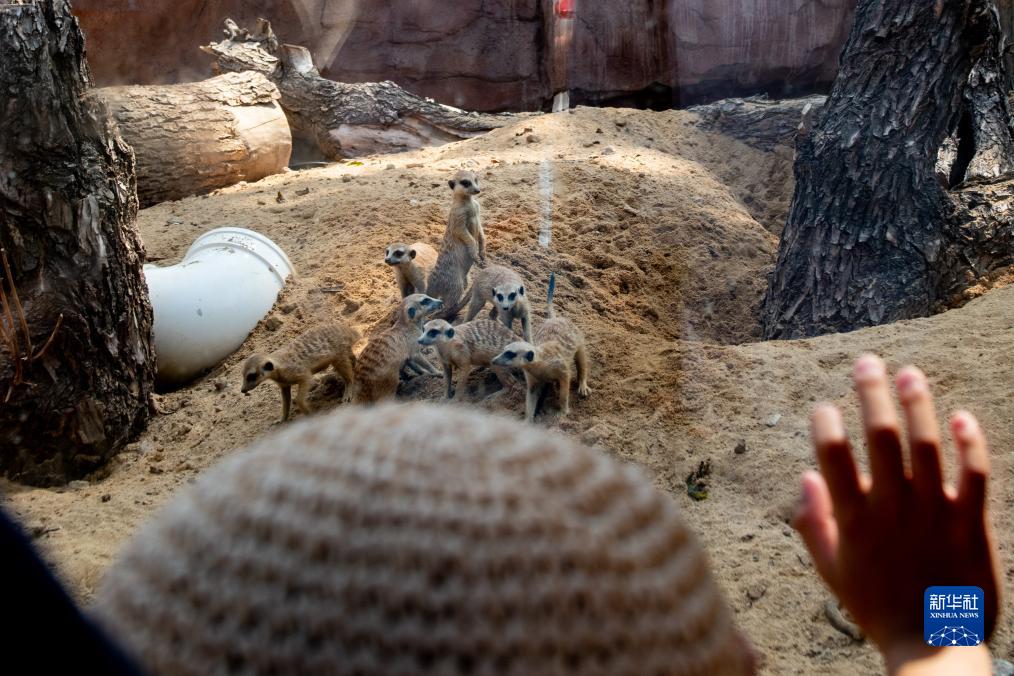 9月16日,游客在武漢動物園參觀細尾獴。
