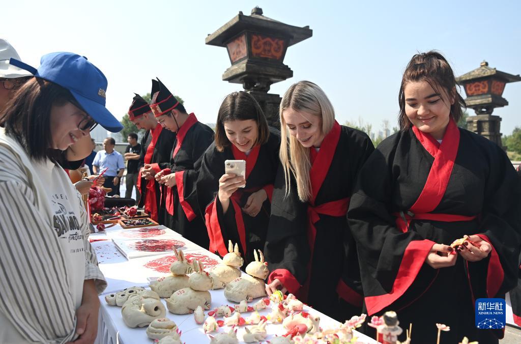 9月16日,中外大學生在交流活動上了解陜西非遺。
