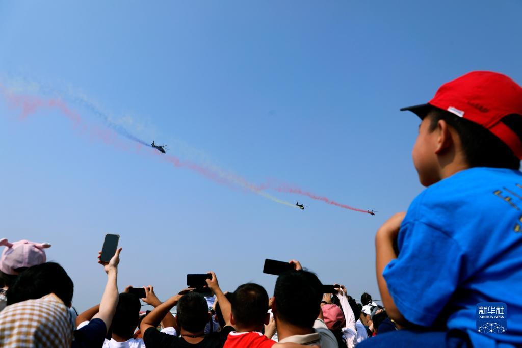 9月16日,陸軍“風雷”飛行表演隊直-19武裝直升機進行飛行表演。