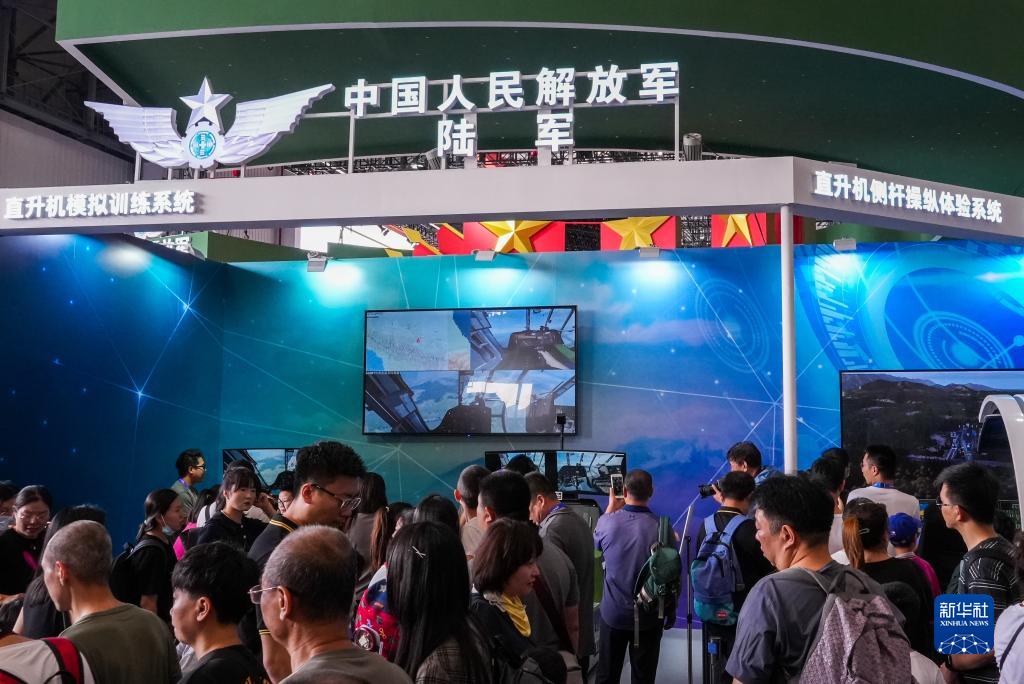 9月16日,觀眾在中國人民解放軍陸軍展臺前參觀。