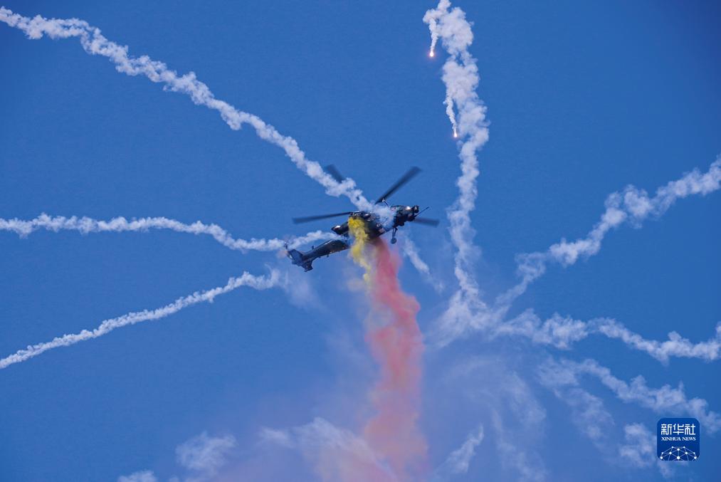 9月16日,陸軍“風雷”飛行表演隊直-10武裝直升機發射干擾彈。
