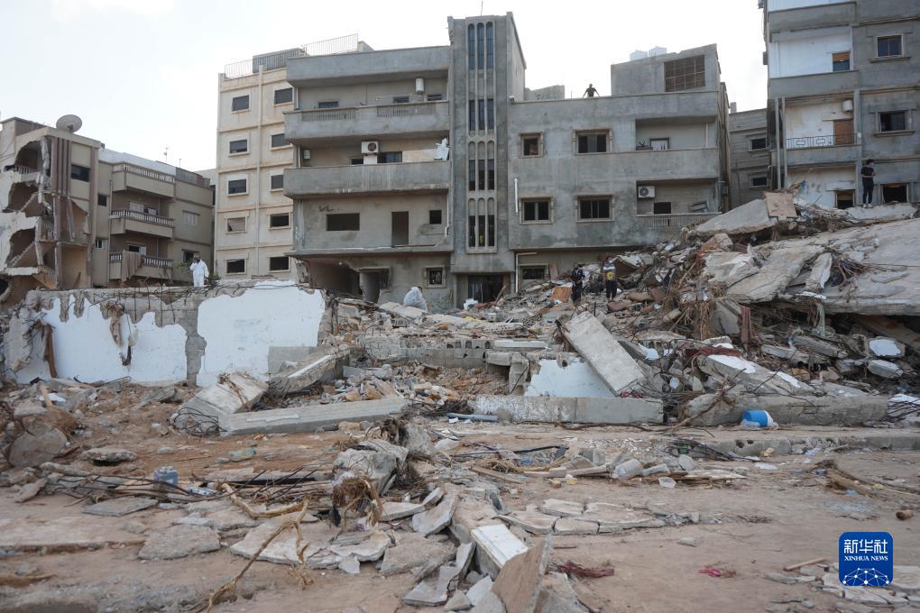 這是9月16日在利比亞德爾納拍攝的受損的建筑。
