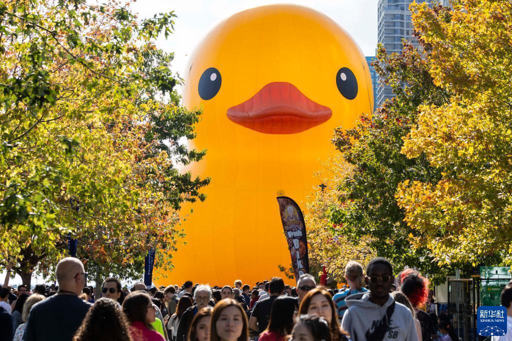 當日,一只6層高、重約13.6噸(30000磅)的橡皮“大黃鴨”亮相多倫多,吸引了眾多游人。這是“大黃鴨”繼2017年后再次來到多倫多,從9月16日至17日向公眾開放。