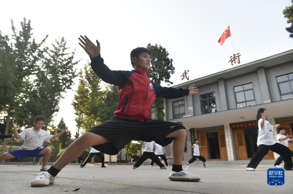 9月14日,河南溫縣陳家溝一家武術學校的學員在練習太極拳。