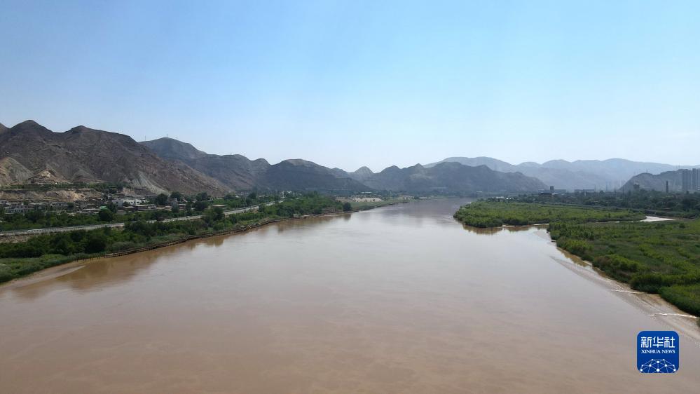 黃河流經甘肅省蘭州市西固區的河口古鎮(7月9日攝,無人機照片)。
