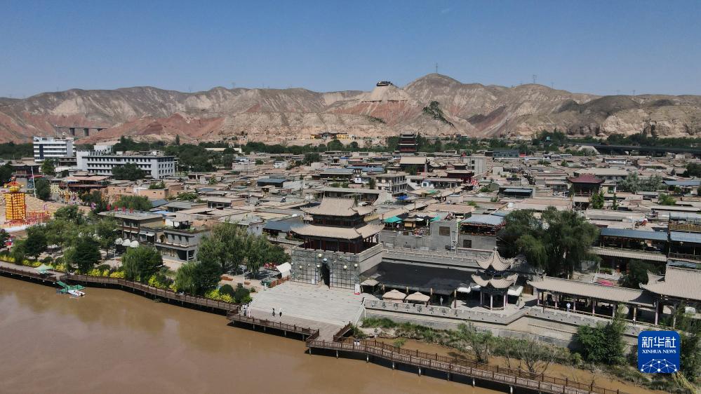 這是位于甘肅省蘭州市西固區黃河北岸的河口古鎮。河口古鎮歷史悠久、文化底蘊深厚,現留存商賈碼頭、戰略要塞、交通樞紐等遺跡(7月9日攝,無人機照片)。