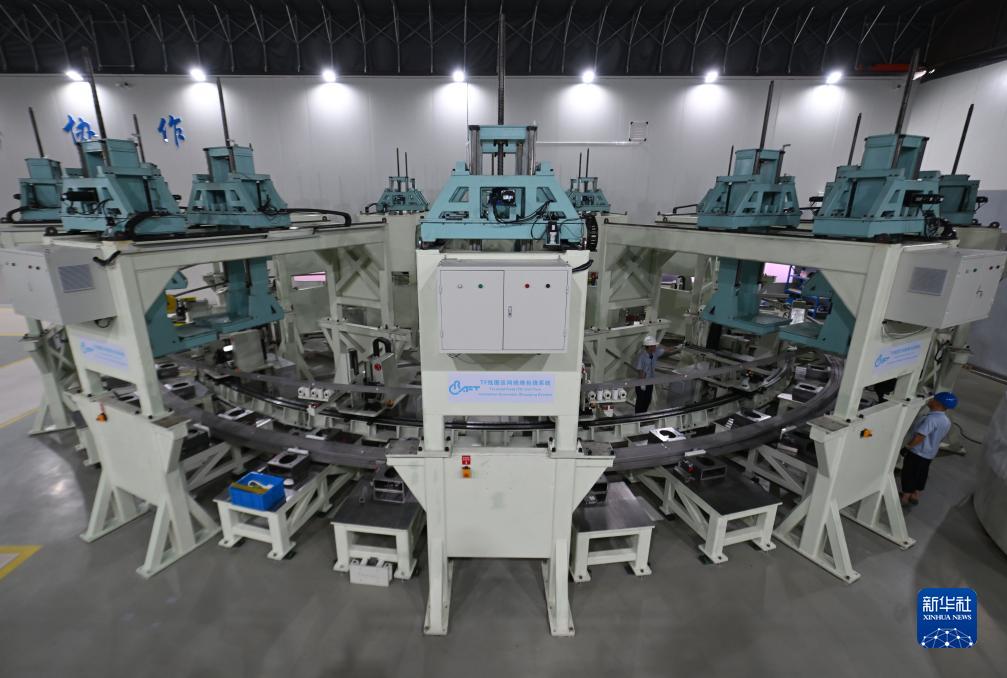 聚變堆主機關鍵系統綜合研究設施(CRAFT)園區內的TF線圈匝間絕緣自動包繞系統(9月15日攝)。