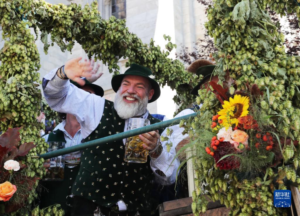 9月16日,人們參加德國慕尼黑啤酒節開幕大游行。