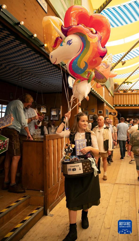 9月16日,工作人員在德國慕尼黑啤酒節上售賣氣球。