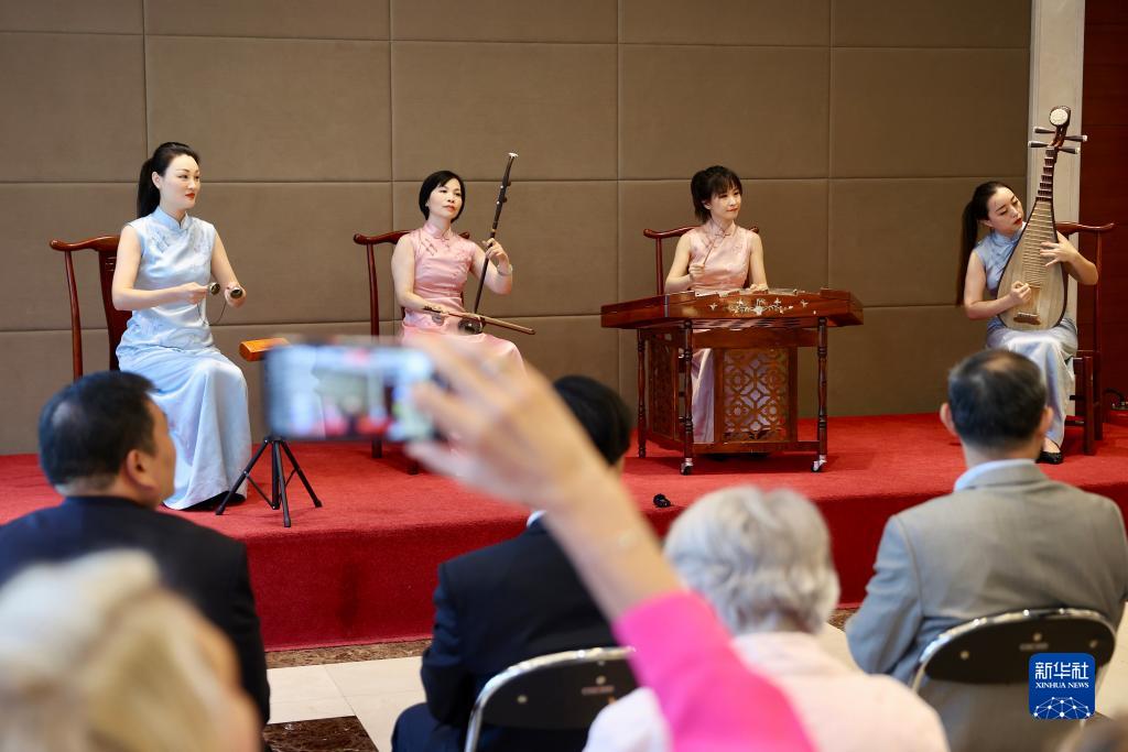 9月16日,參觀者在比利時布魯塞爾的中國使館開放日活動上觀看“江南絲竹”民樂演出。