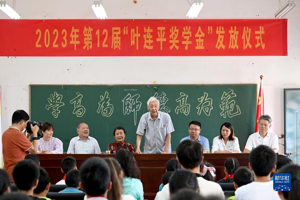 9月17日,第十二屆“葉連平獎學金”發放儀式在安徽省馬鞍山市和縣卜陳學校舉行,共計為37名中小學生發放46600元獎學金。今年96歲的葉連平是卜陳學校的退休教師,2000年,他在自己家里開辦了“留守未成年人之家”,利用周末和寒暑假為農村學生免費補習英語。2012年,葉連平同烏江鎮政府、卜陳學校三方籌款6萬元,成立了和縣烏江愛心助教協會暨葉連平獎學金,12年來為300多名農村孩子累計發放獎學金37萬余元。