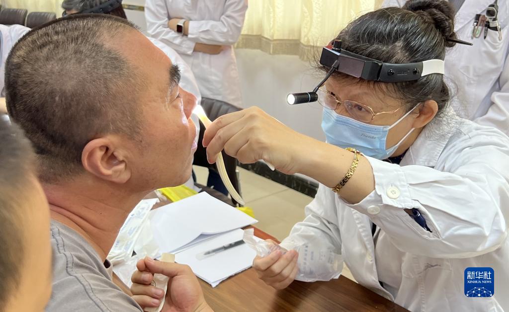 9月17日,北京友誼醫院耳鼻咽喉頭頸外科中心的魏春暉醫生(右一)在為患者做檢查。