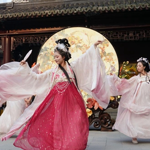 9月17日,演員在豫園商城中心廣場表演國風舞蹈。