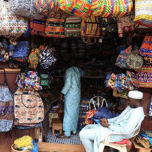 喀麥隆雅溫得手工藝品市場約有30余個店鋪,售賣面具、雕像、飾品、非洲鼓、繪畫、筐籃等各類手工藝品。