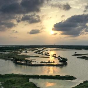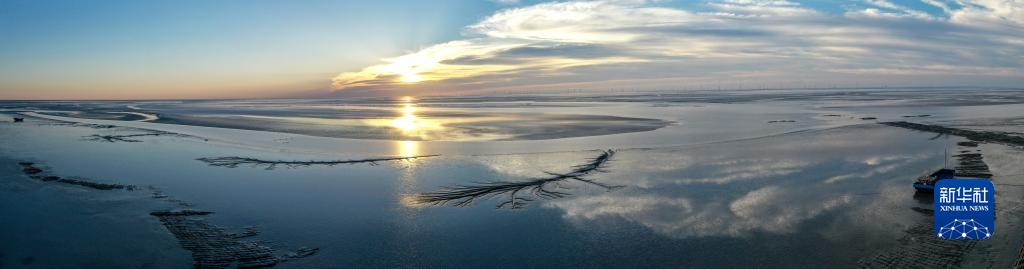 晨曦下的鹽城東臺條子泥濕地(2023年9月1日攝,無人機照片)。