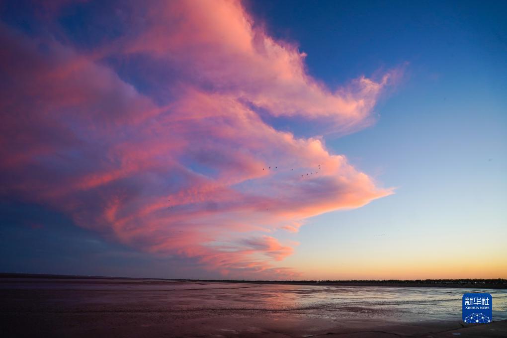 鹽城東臺條子泥濕地日落時分景色(2023年8月31日攝)。